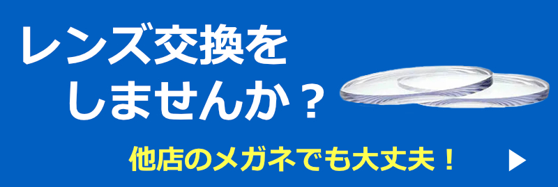 レンズの交換も歓迎します。他店で購入されたメガネやダテメガネとして使用したいフレームなどを持ち込まれて、レンズを交換できます。