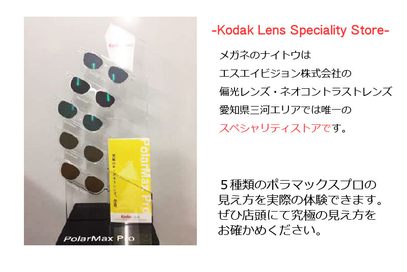 「光」と長年向き合ってきたKodak Lens だからこそたどりつくことができた、従来の偏光レンズの上をいくコントラスト感度と、未だかつて体験したことの無い視界を得られる唯一の偏光レンズ、