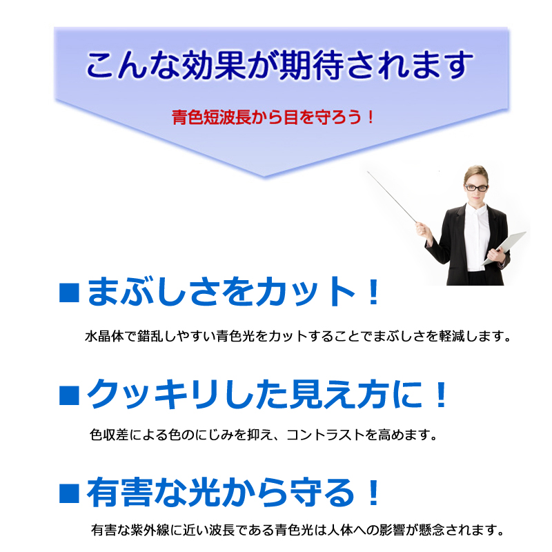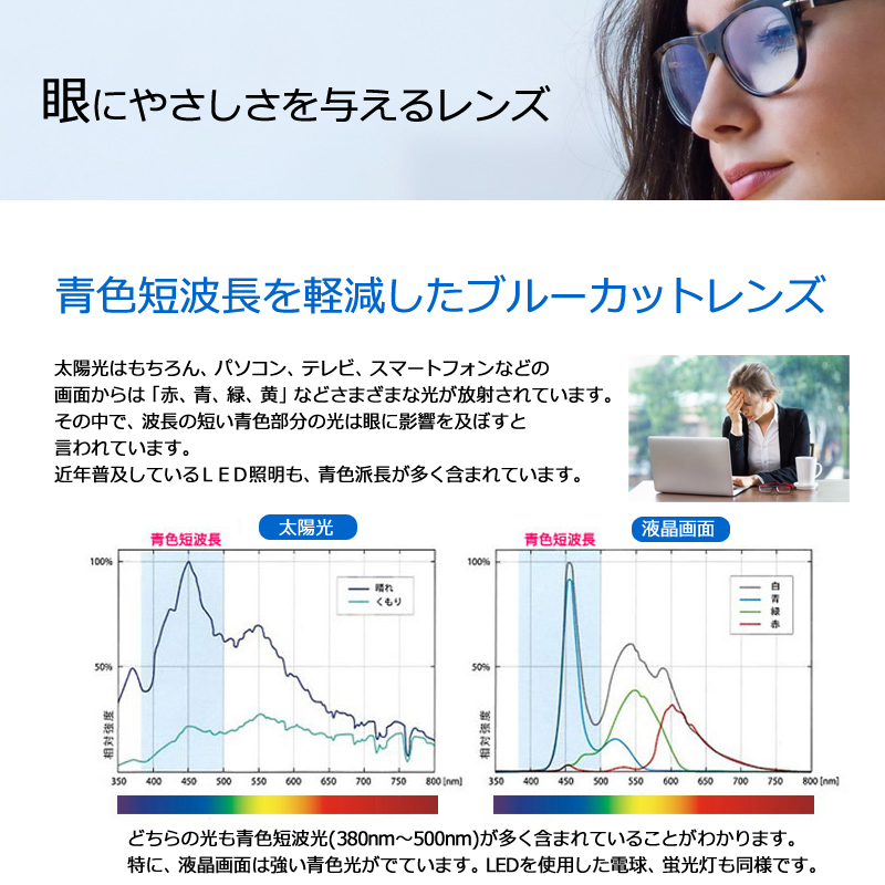 ブルーライトだけでなく紫外線(UV)もカットします。