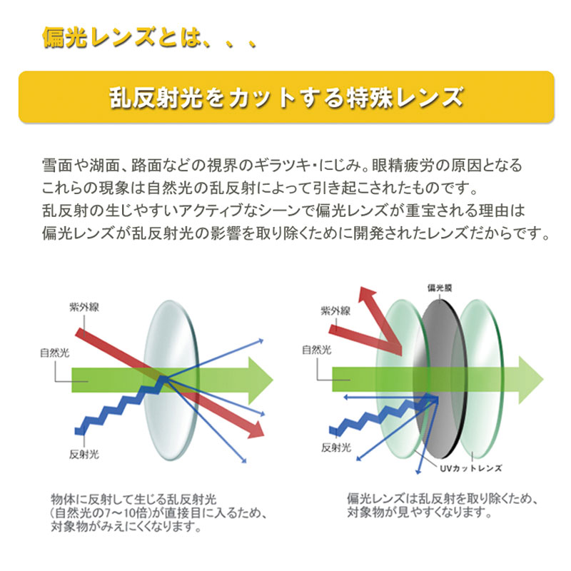 レンズ表面での余計な反射を抑え、より見やすい視界を確保します。