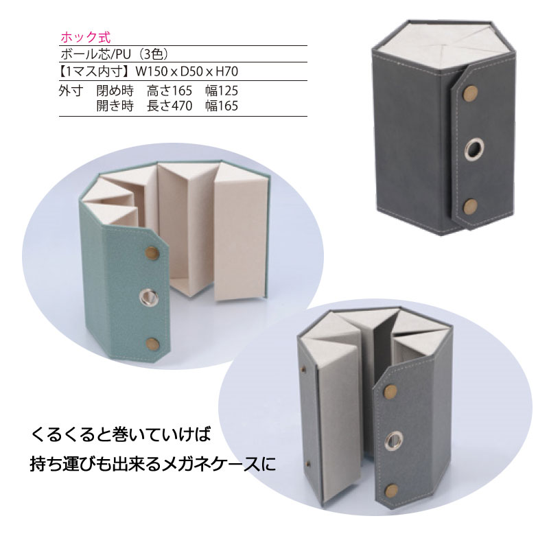5本のメガネが収納できるから、旅先へも持ち運べます。