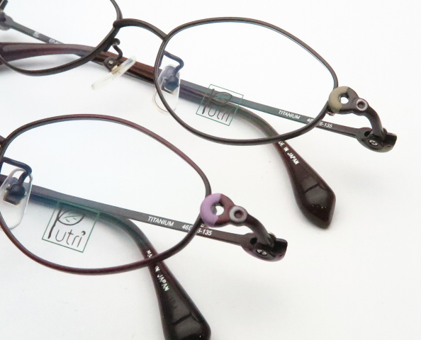 プトゥリはレディースフレームで軽量のチタン素材の日本製のフレームです。デザインはシンプルなものが多くて一部ワンポイントなデザインがあるフレームもあって大人の女性に人気のフレームです。
