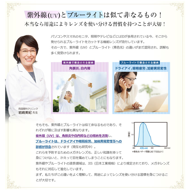 さらにブルーライトをカットするためには、HOYAのオプションコートであるVGラピスコートを入れてカット率を高めることも可能です。(別途料金)
