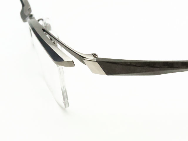 カーボンはテンプルに使用。カーボンらしく、淡いチェック上の柄が見られます。