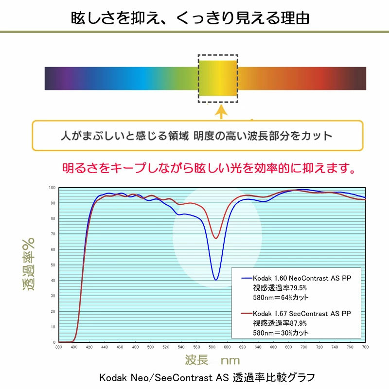 まぶしさを軽減させて物や文字のコントラストを高めてくれる画期的なレンズです。