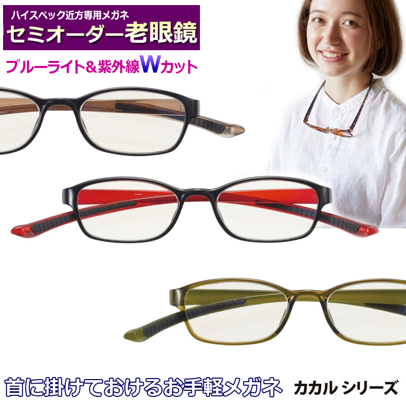 首に掛かるフレーム + 薄型非球面レンズブルーライトカットレンズつきで