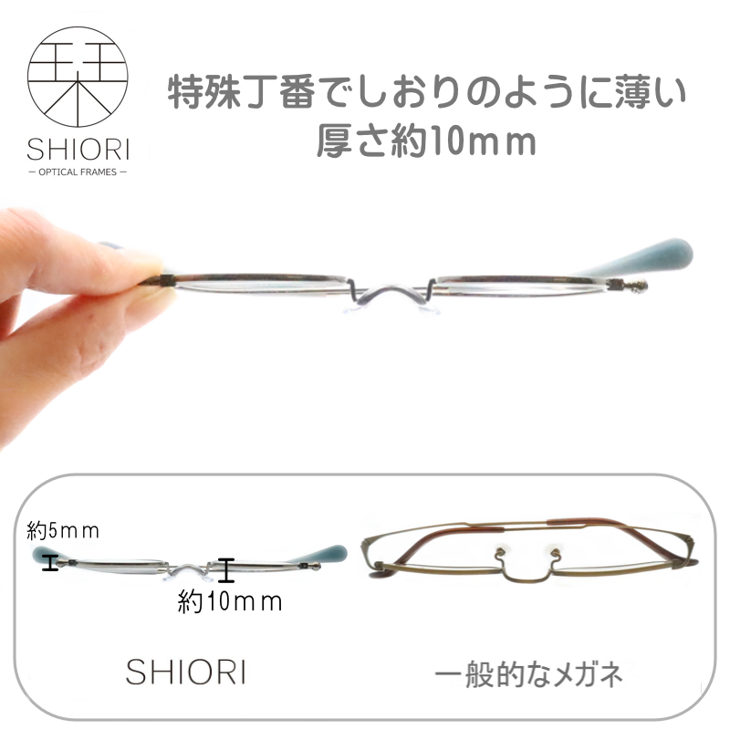 栞(SHIORI)はその名の通りしおりのように薄く折りたためる機能を持ったメガネです。