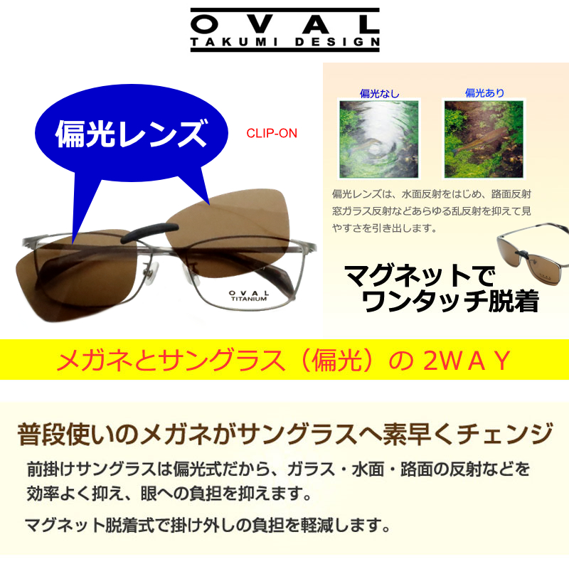 一本のメガネで二役をこなせる便利な前掛けサングラス付きメガネ「OVAL」