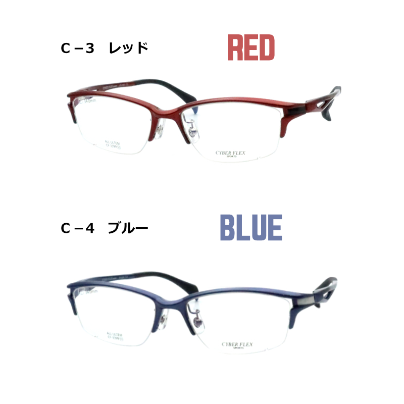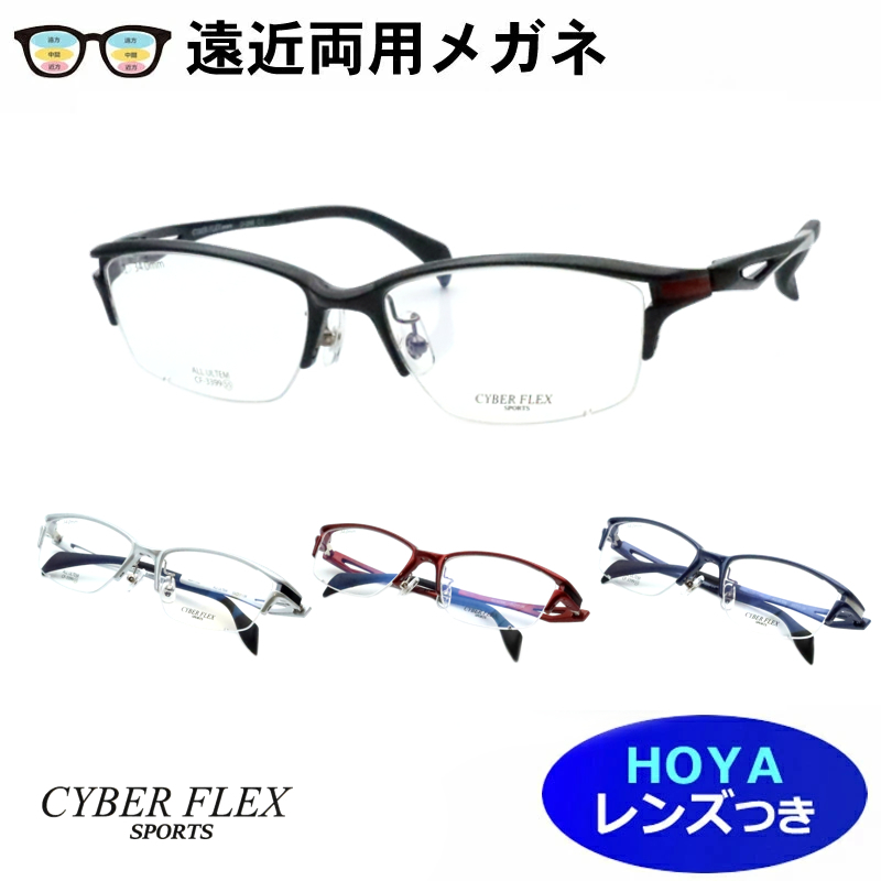 フレームカラーはブラック・シルバー・レッド・ブルーの4色となっており、使用する遠近両用レンズは安心のHOYA製レンズです。