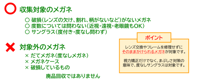 お手元に不要なメガネがある方やメガネの買い替えをお考えの方は、SDgsにも貢献できるこの機会に是非いかがでしょうか。