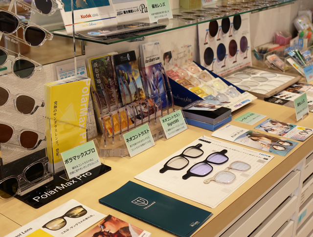 当店では、トライガード・ネオコントラスト・シーコントラスト・偏光レンズ・ポラマックスプロ・アリアーテトレス・キャリアカラー・レイガード435・調光レンズなど実際に体験できるレンズをご用意しております。