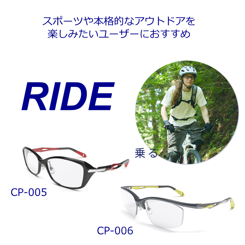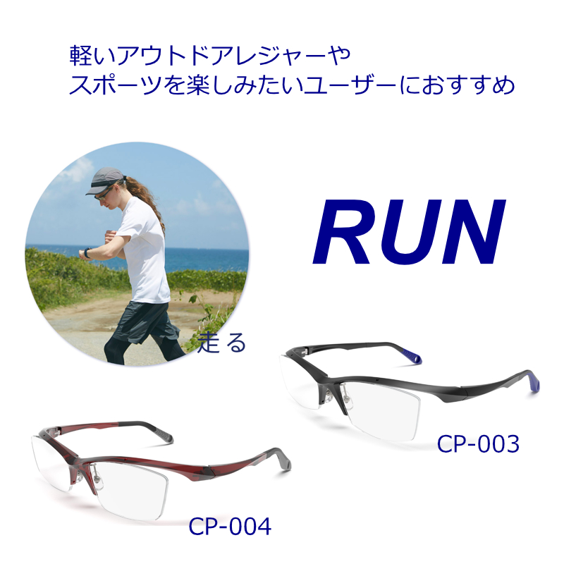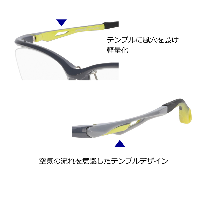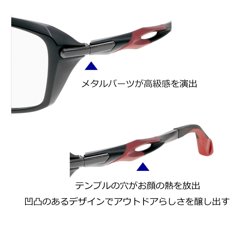 軽くてしなやか、丈夫という機能性を持つ樹脂素材をメガネフレームに使用し、動きを伴うアクティブシーンでも快適に装用できます。