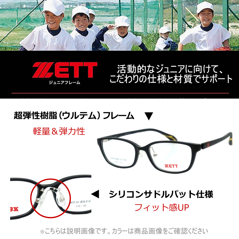野球用品として有名なブランド「ZETT(ゼット)」の子供用メガネ(ジュニアフレーム)のご紹介です。