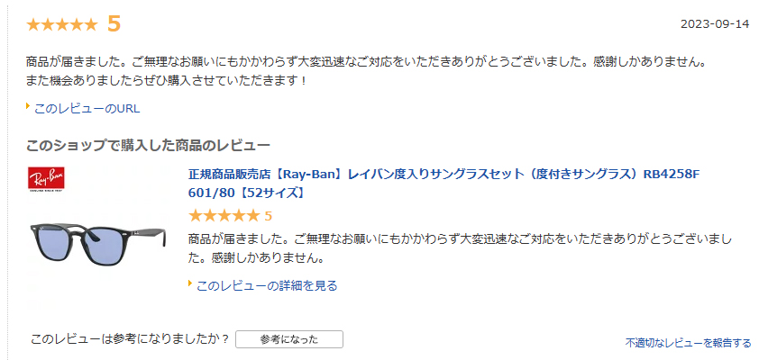 最近お買い上げ頂きましたお客様の声(レビュー)がこちらです。