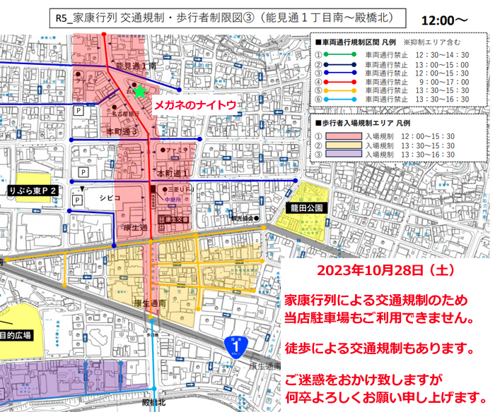 家康行列による交通規制につきましてのご案内となります。