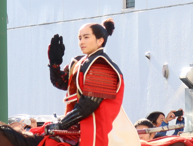 俳優さんたちも街頭の歓声に手をふり答えながら当店前を通っていきました。