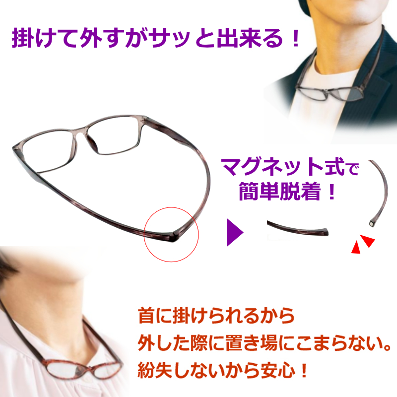 こちらのフレームは首に掛ける後ろ側部分にマグネットによる開閉機構があります。