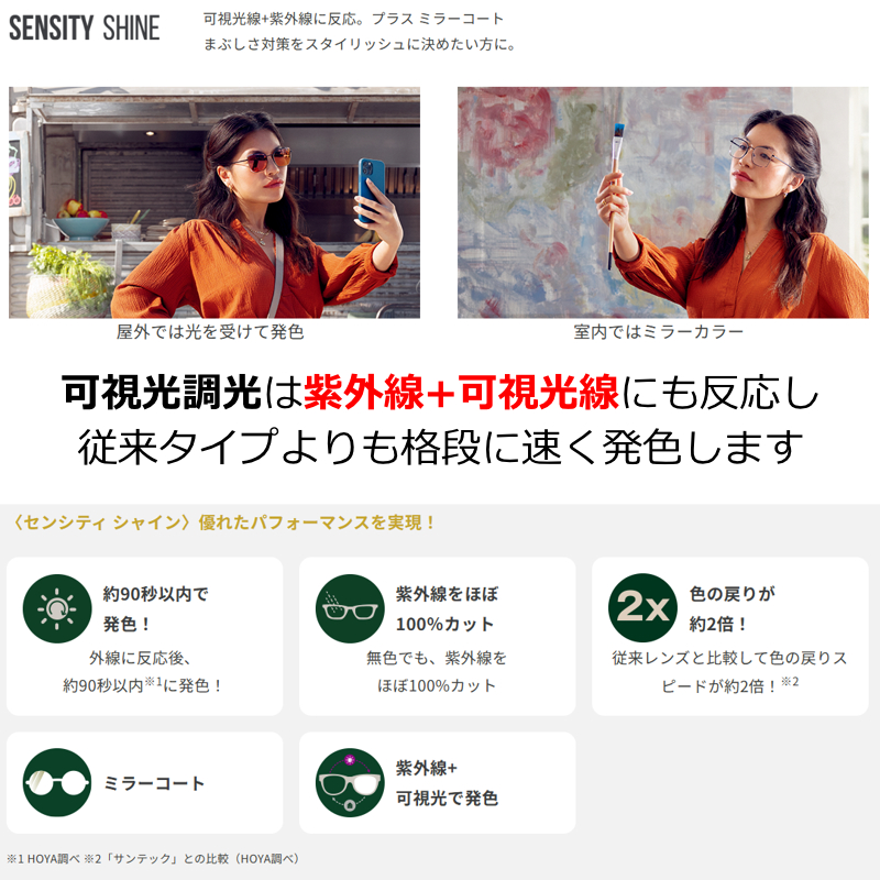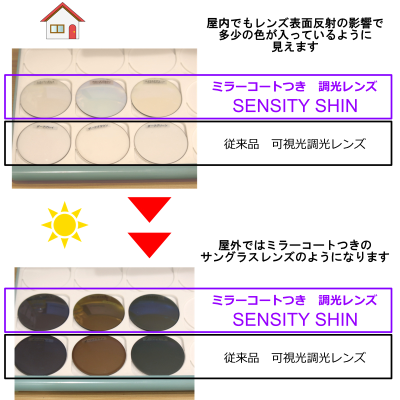ミラーコートが付いてよりサングラスのような色に変わるタイプが発売されていますのでご案内です。