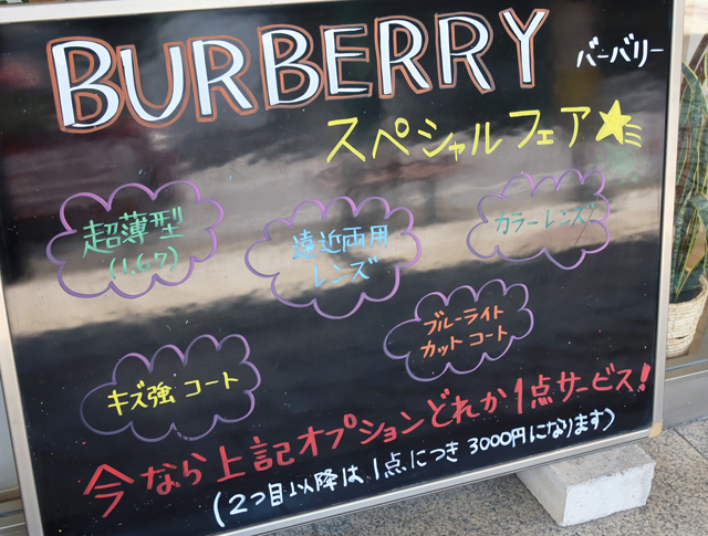 バーバリーお好きなフレームに下記のオプション1点サービス!!