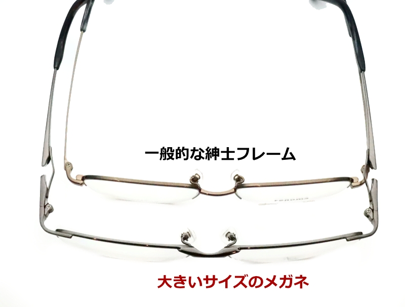 当店では通常サイズのメガネでは横幅が窮屈な方も、ゆったりと掛けられる大きいサイズ(ラージサイズ・キングサイズ・ビックサイズ)のメガネを多数用意しております。