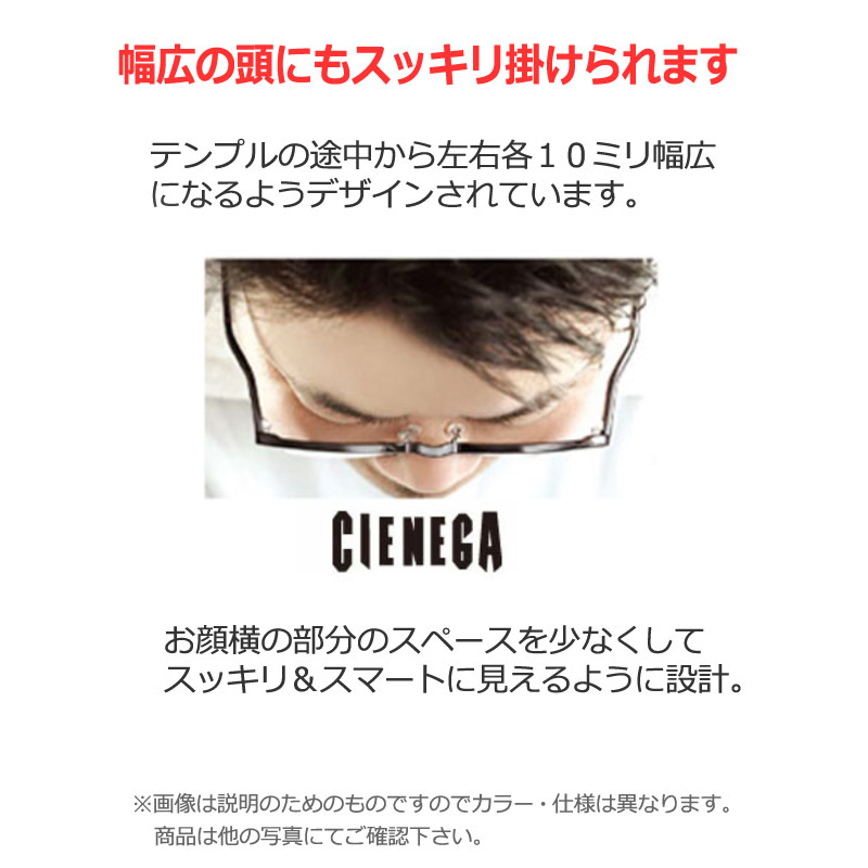 通常のメガネよりもレンズ面が大きい(横幅も大きい)60サイズのメガネや、前側のレンズ面は通常サイズと変わらずにテンプルの途中から左右に広がっているタイプのメガネもございます。