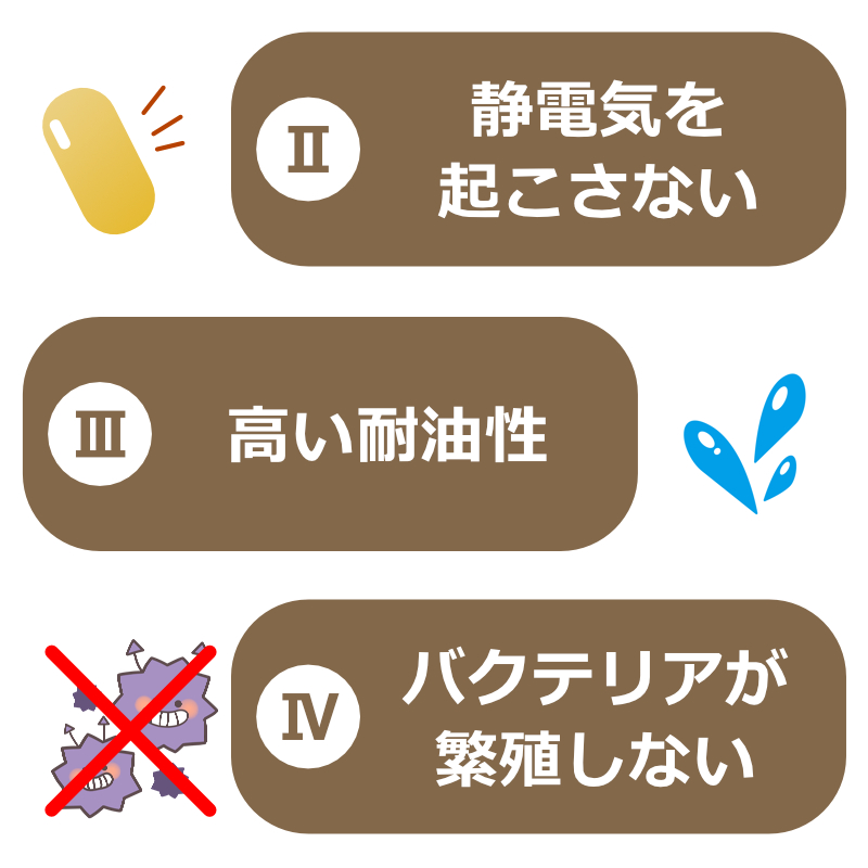 さらに、高い耐油性と変色しない特性を持ち、有害物質を含まない安全な素材で作られています。