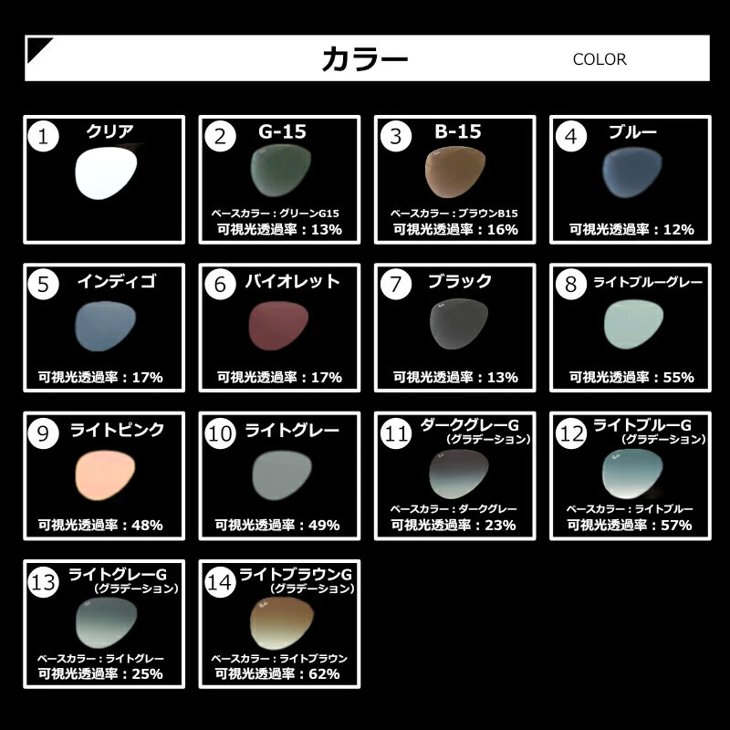 上記のカラー一覧よりお好みのレンズカラーがお選びできます。