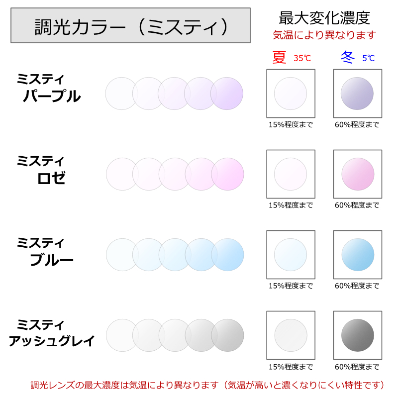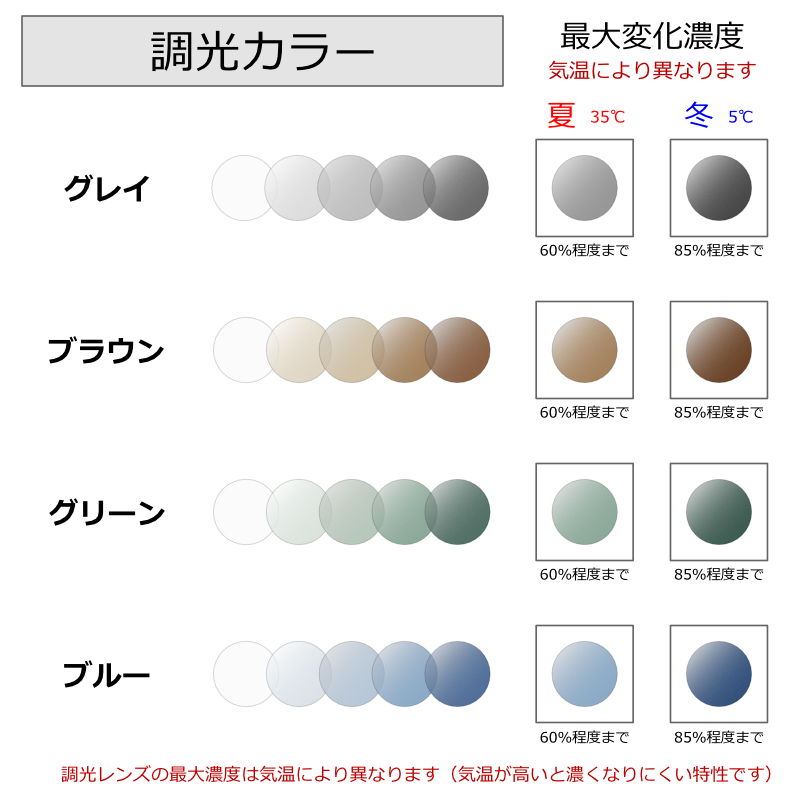 - カラーレンズに調光機能つき 【カラーレンズ+調光効果】