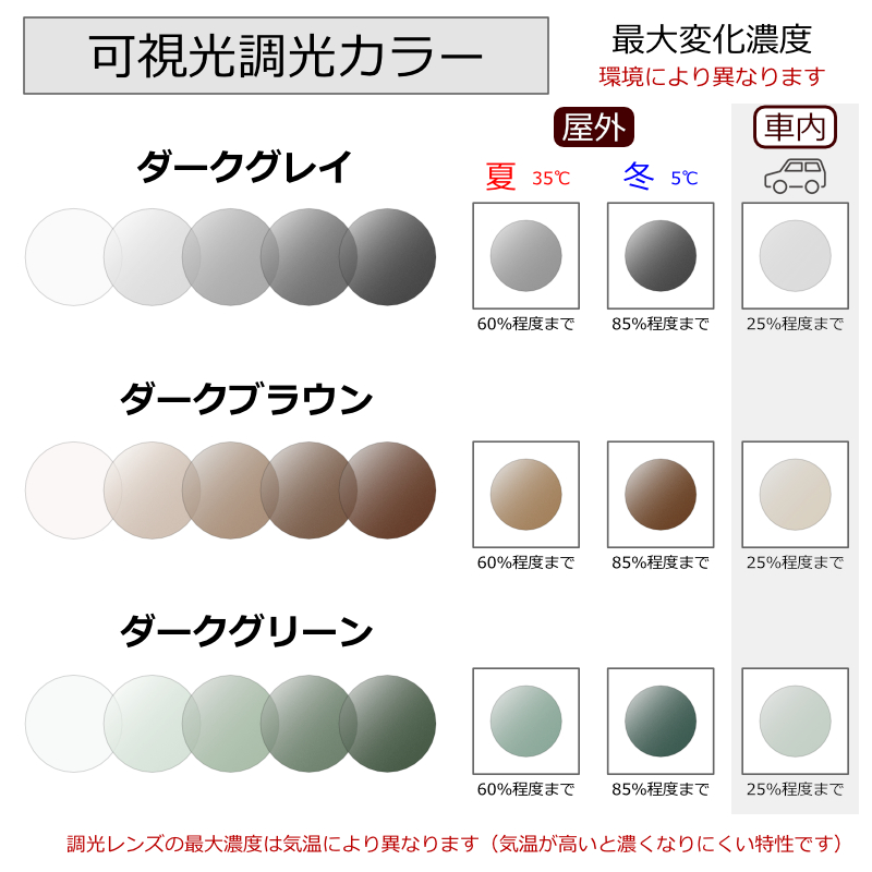 紫外線+可視光にも反応して発色する【可視光調光レンズ】