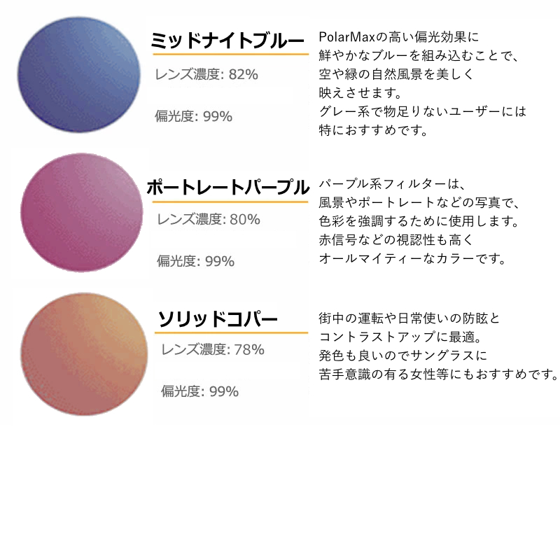 老舗の偏光レンズKodak PolarMax(コダック ポラマックス)シリーズに新色が追加されました。