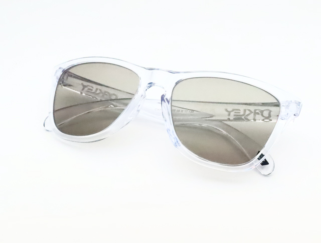 オークリーのカジュアルなデザインのフロッグスキンに純正調光レンズにて作製しました。