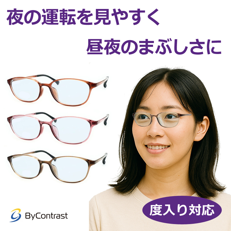 ネオコントラストよりもレンズの色は薄くなります。色が薄いのでネオコントラストより効果は弱くなりますがバイコントラストのいい所は、レンズの色味が薄いので街中やスーパーの買い物でもそのままかけていても溶け込みやすい濃さとなります。