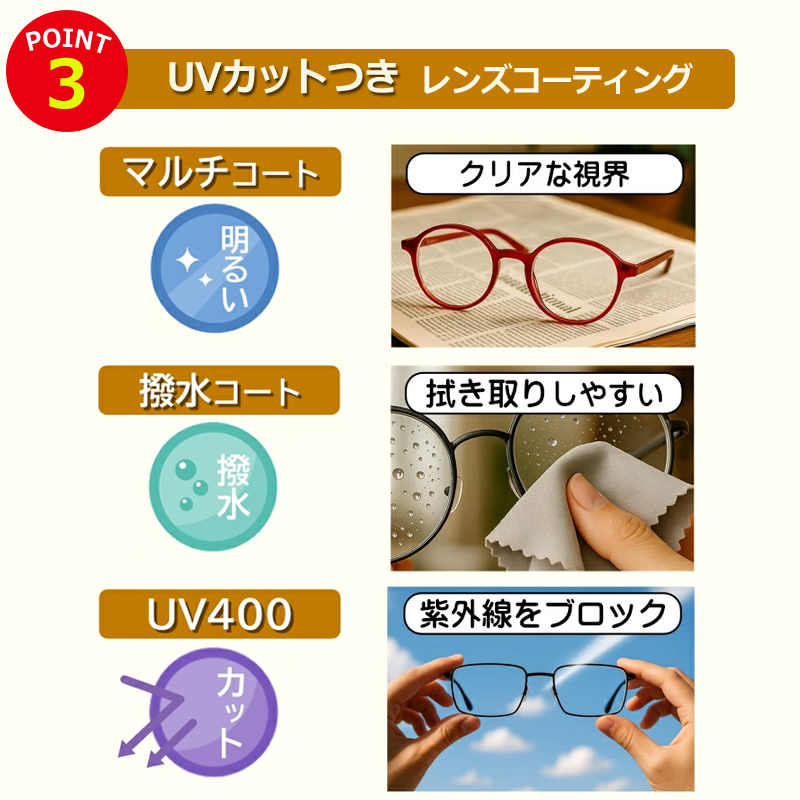 - ブルーライトカットやUVカットにも対応