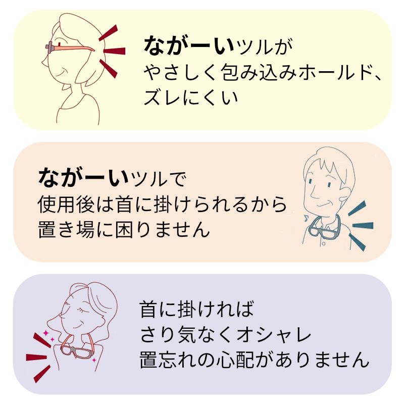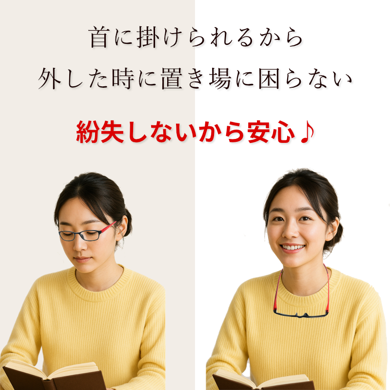 老眼鏡をよく失くしてしまう方、掛け外しの多い方にとってはとても便利です。