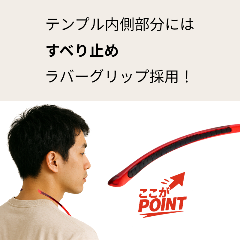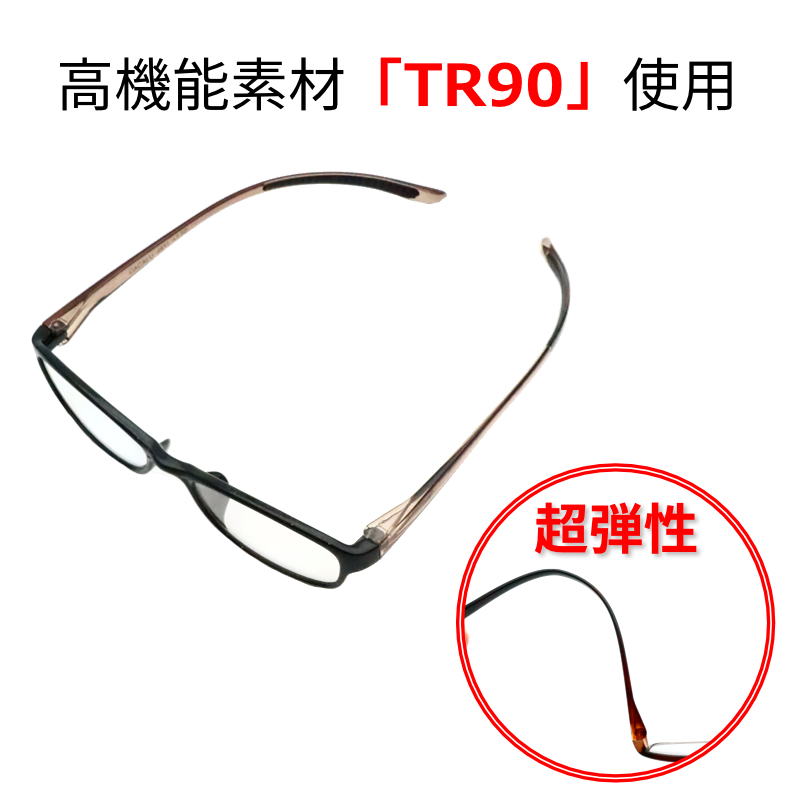 フレーム素材には、スポーツメガネにも使われる軽量樹脂 TR90 を採用。