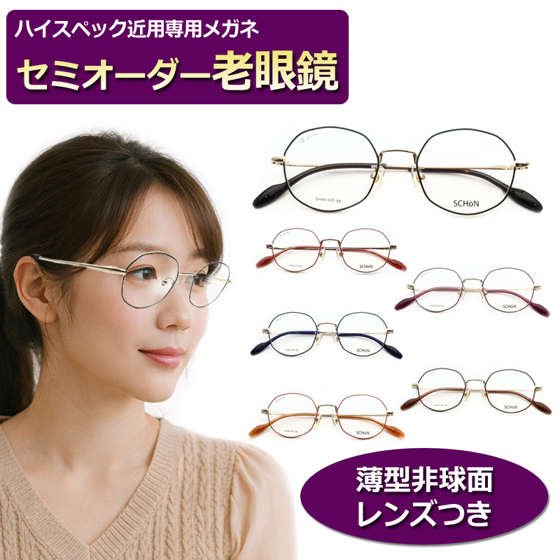 当店のセミオーダー老眼鏡とは100円均一や雑貨屋さんで販売している老眼鏡とは異なり、国内のレンズメーカーで作製しているレンズを使用します。左右で同じ度数にて作製できますが、左右別々に度数を設定できます。度数も当店では0.25刻みで細かく度数設定ができます。