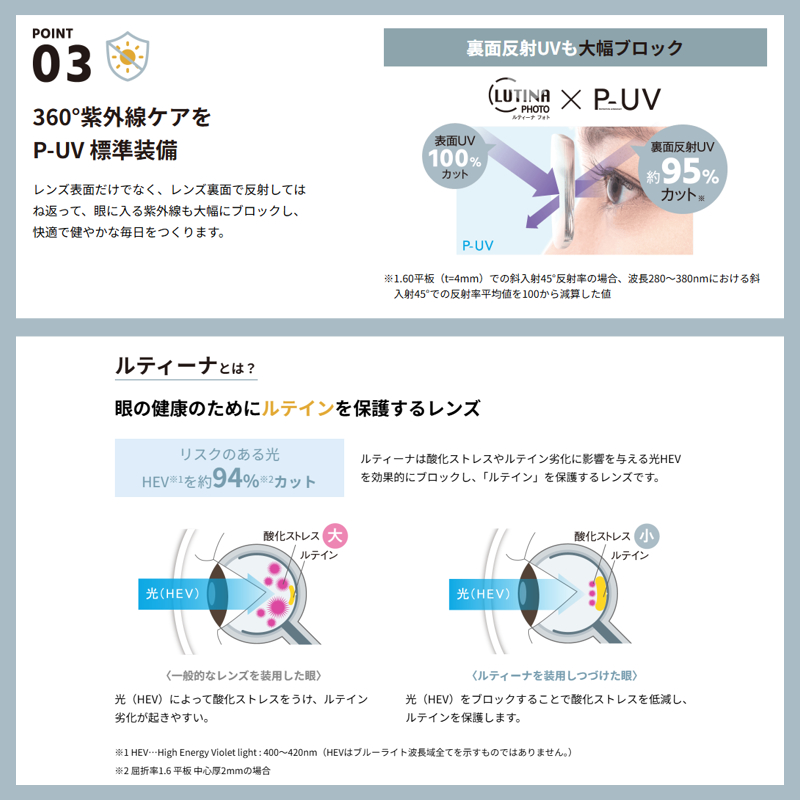 まぶしさ対策だけでなく、毎日のアイケアを意識したい方にも注目のレンズです。