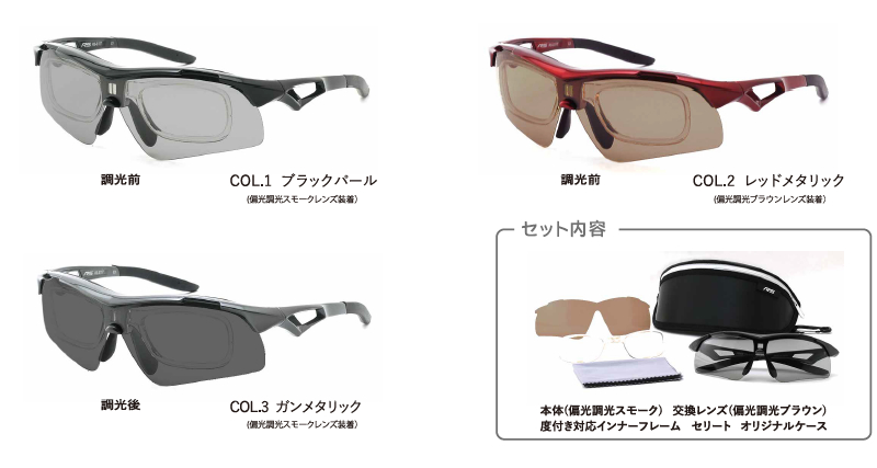 このモデルは、スモークとブラウン、2枚の偏光調光レンズがセットになったスポーツサングラスです。