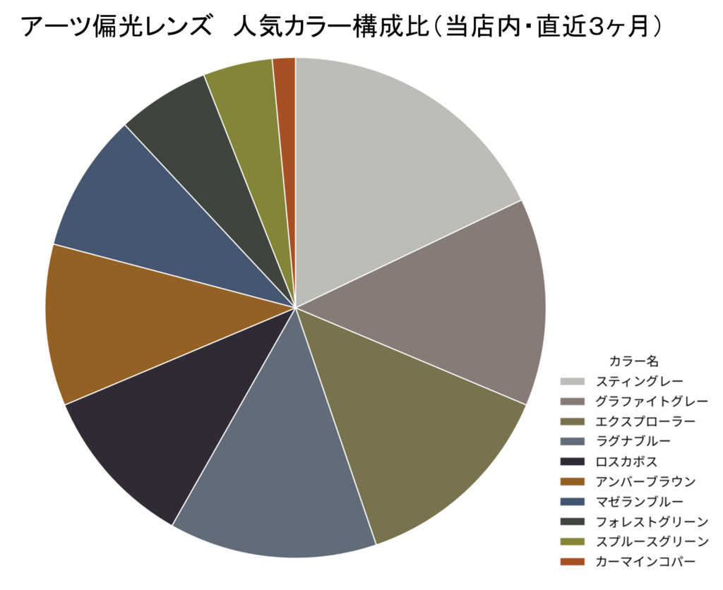 今回は、直近3カ月の当店でのご注文傾向をもとに、アーツ偏光レンズ(RARTS)の人気カラーをランキング形式でご紹介します。