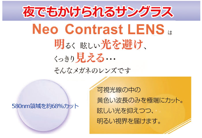 ネオコントラストレンズは夜間運転(ナイトドライブ)が可能なレンズです。