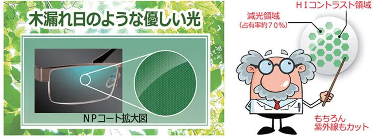 目の疲れやまぶしさを抑え、コントラストを高めてくれるレンズです。