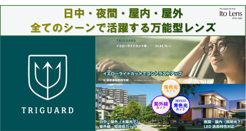 トライガード(TRIGUARD)は日中・夜間・屋外・屋内のすべてのシーンで活躍をする万能型機能レンズです。