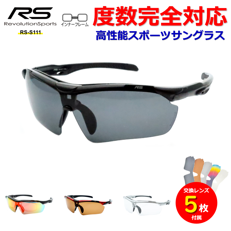 人気のスポーツサングラスです。こちらの商品は紫外線に当たるとレンズの色が濃くなる調光レンズが含まれています。交換レンズは全部で3種類(偏光レンズ2枚+調光レンズ1枚)。インナーフレームにレンズを入れると度付きに出来ます。
